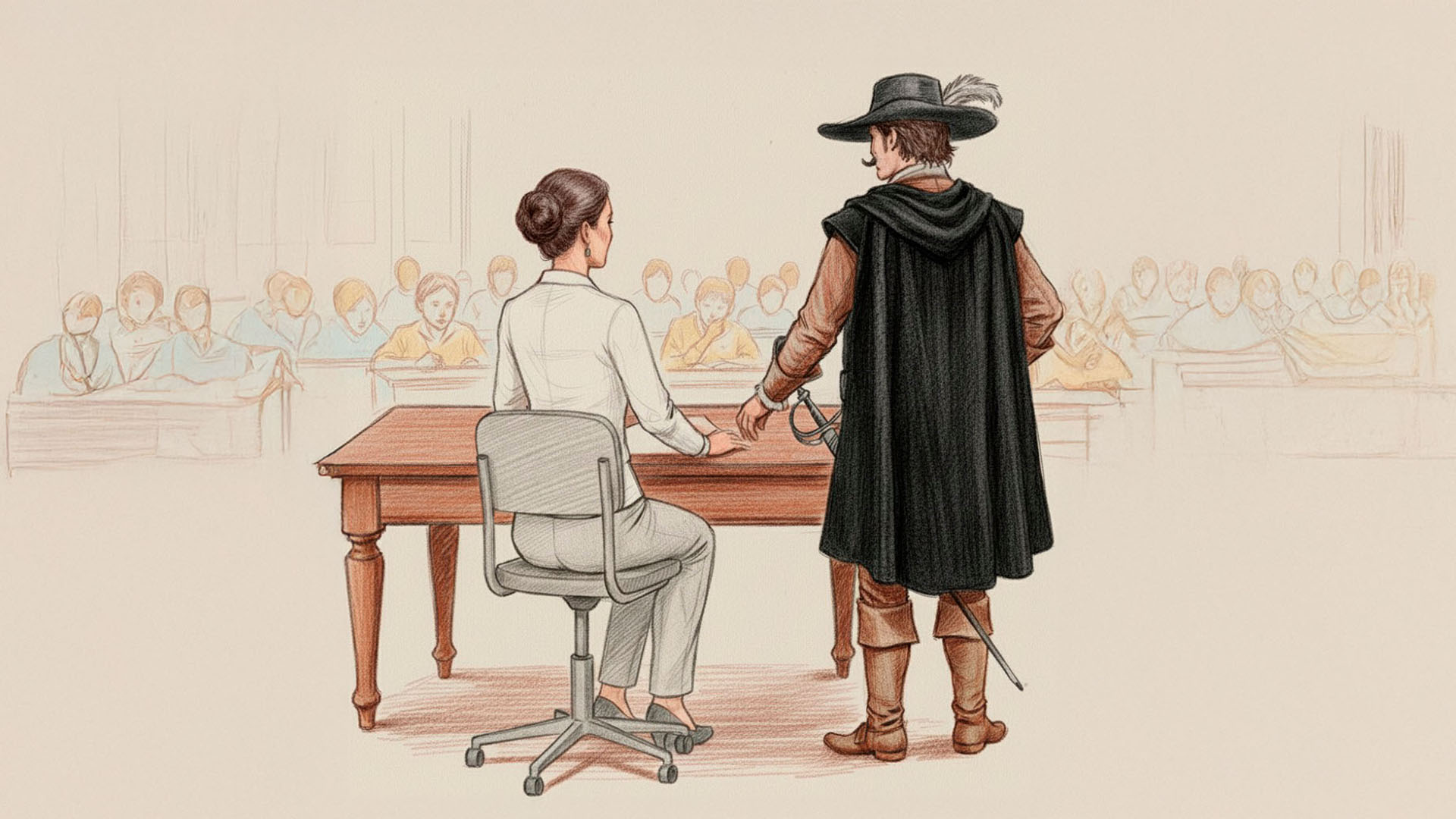 También les hacía una ubicación en la época, pero no de entrada. Lo iba sacando en base a lo que aparecía en el libro: por qué determinadas visiones del mundo eran de una forma u otra. Recuerdo una anécdota de un condenado a muerte que caminaba hacia el cadalso erguido, envuelto en su capa, con actitud señorial, o de otro que entraba a Madrid a caballo y, al caérsele una joya valiosísima, siguió cabalgando sin siquiera darse vuelta para ver quién la había tomado, por ejemplo. Ese tipo de cosas que son propias de una época y pueden llamar la atención.